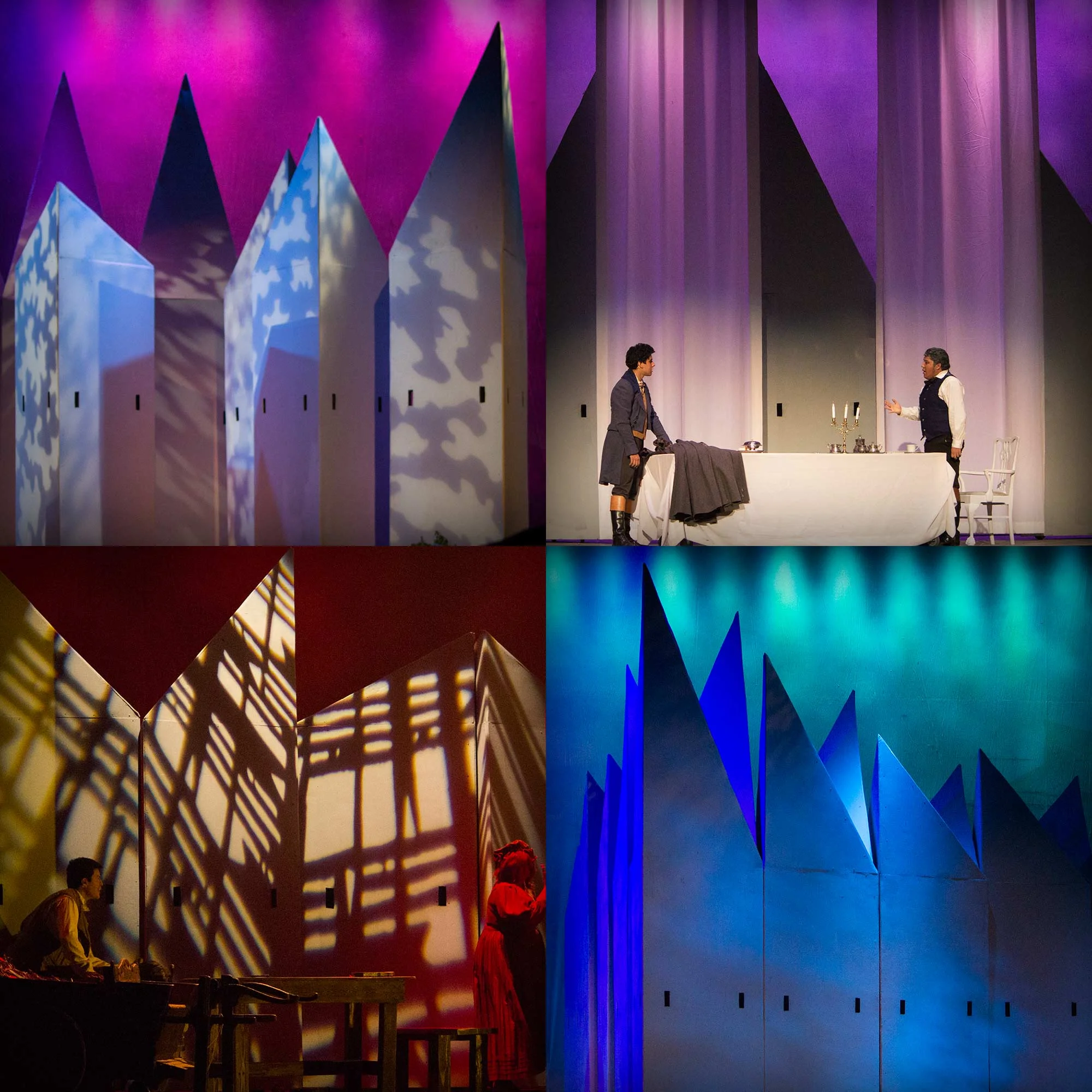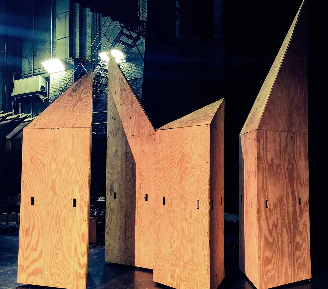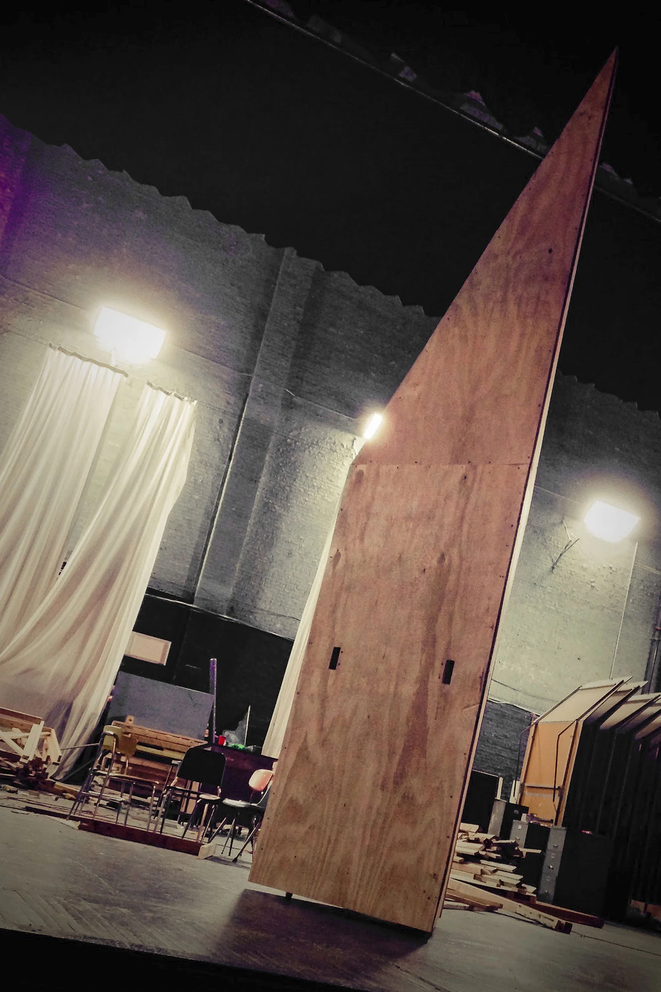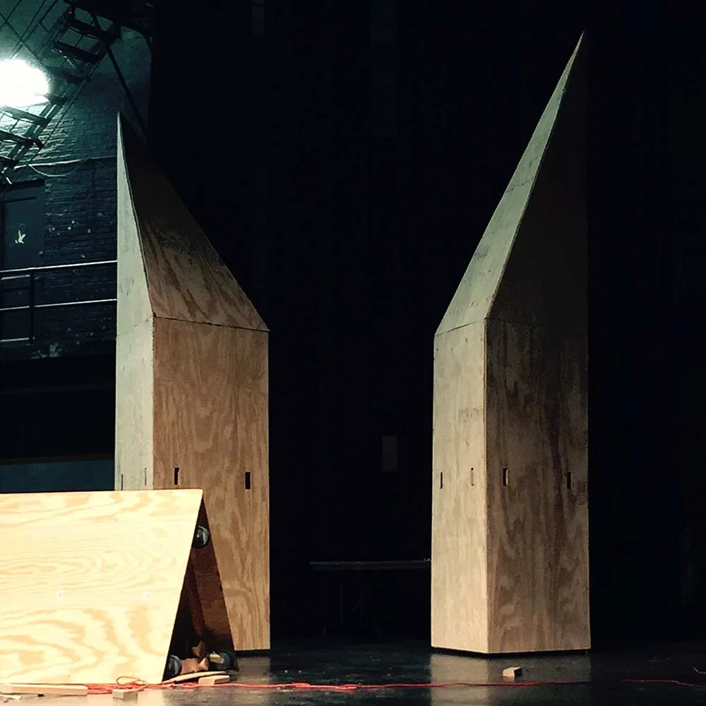 Given the demands of the production and challenges of the space, I’m proud of what I was able to achieve with this scenic design. Putting my own twist on a possibly ancient Theatre tool was one of my proudest technical moments to date and delighted cast, crew, and audience alike making the concept feel fresh and new. I challenged myself by attempting something for the first time and showing the restraint required to stand behind such a deceptively simple concept. It was everything I wished for and more in my scenic desires stated as the outset, and proved incredibly adept at creating warm intimacy when need be or making the world of Frankenstein feel widescreen and airy. Certain placements were used at various times to signify vaulted timber ceilings of interior spaces, trees and forests, sharp peaks of mountains and shorn off icebergs, or the stage opened up to create threateningly vulnerable environments with no place to hide. My actors, technicians, and I learned plenty of lessons along the way and I got a lot of new ideas I have stowed away which I hope to have the opportunity to explore further someday.